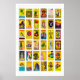 Yellow Matchbox Labels Grid Print, Vintage Poster