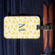 Yellow meadow petit flowers pattern on a white background with custom teal colour monogram in serif font