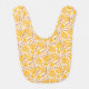 Boho baby bib featuring hand drawn illustration of yellow mid century modern floral pattern.