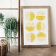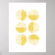 This modern, geometric art print features a series of yellow circles divided in half, and divided up with curvilinear and straight lines. This design is versatile enough to work with a variety of decor styles, but I think it would look great in an office or loft.