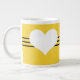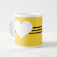 Sweet and charming Modern Heart Specialty Mug featuring a yellow background and a cute heart and striped border. This cute and girly mug is perfect for enjoying your favorite hot beverage! Customize with the text of your choosing. Click on "Customize" to find additional personalization options.