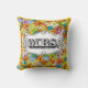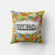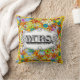 Bright Aqua Yellow Red folksy Boho Bohemian Floral Mrs Wedding Anniversary or Mrs. Bride Throw Pillow.