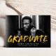 Announce your graduation with our Modern Paint Splatter photo graduation announcements. The design features the graduate's horizontal photo with "Graduate" in yellow lettering with white paint splatters. Personalize the front of the creative graduation announcements by adding the graduate's name, school name, and graduation year. The back of the announcement features a yellow background with white paint splatters. The design is perfect to use for both high school and college graduates.