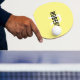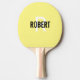 Modern ping pong paddle with a yellow background, a white monogram and a black typography name. Personalize with your name and monogram.