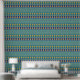 Elegant mix of blue and yellow Moroccan shapes and green stripes in a horizontal pattern that will make it super easy to match rolls up and also make your wall look wider.