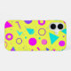 This phone case features a bold yellow background with playful geometric shapes in neon pink, turquoise, and purple. Inspired by retro 80s Memphis style, it adds a fun and colorful vibe to your everyday look. Perfect for anyone who loves abstract and vibrant design.