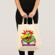 The printing came out very well, better than I had anticipated. The natural color fabric is sturdy with strong seams and comfortable handles. This tote fits easily over my shoulder. As it is filled, the bottom flattens out--very cool! I would buy this product again. This grocery tote holds a lot of groceries! The image quality was very good. The colors were a little darker than I had expected. The darkness may have been due to printing on a natural color fabric rather than on white. The cat design is attractively centered on the tote. The spirit of the design is very lively, just as it appears on the Zazzle website.