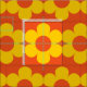 Yellow on Orange Flower stripes Retro Fabric 60s