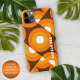 Beautiful contemporary dark yellow, bright orange, and white colored geometric circles pattern on a brown background. With the option to customize or personalize with a name, monogram, or initials of your choice. Ornate, elegant, stylish, and eclectic design for the fancy artistic fashionista, the artsy fashion diva, popular hip trendsetter, vintage retro art style, and abstract digital geometric motif lover. This design is available in Apple iPhone 6, 7, 8, 10 or X, XR, XS, 11, 12, 13 Mini, 14, 15 Plus, and Pro Max cellphone cases. Show off your style, look fashionable trendy, and feel stylish with a unique design on a mobile device accessory of your choice.