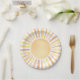 This cheerful paper plate design features a classic watercolor sun at the center, with warm rays in shades of yellow and orange for a soft and timeless look. The hand-painted style gives it a gentle, playful feel that works beautifully for a variety of celebrations. Whether you're planning a “Little Ray of Sunshine” or “Here Comes the Son” baby shower, a “First Trip Around the Sun” birthday, or simply want to add a lighthearted summer vibe to your party, this design brings a bright and joyful touch to the table.