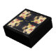 The original artwork by HomeWare on this Gift Box was made from an original photograph of orchid flowers, specifically P. Chain Xen Queen, Yellow/Red Lip. It is a closeup photo, a detailed view of the light yellow flower petals surrounding deep red lips at the bloom's center. There is also a touch of lavender before the petals turn to yellow. The background of the orchid pattern is in shades of deep gray to black. In the center of the design, there is monogram text in a light gold color. This is set to personalize, or delete if you prefer.