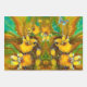 Yellow Orchids Magical Gold Sparkles Stars Green Wrapping Paper Sheets