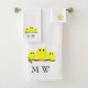 Bath towel set, consisting of a face cloth, hand towel and bath towel with an owl design. You can customise this bath towel set with any text of your choice. Should you require any help with customising then contact us through the message link on this page. Owl design bathroom towel set