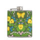 Yellow pansies, birds and butterflies flask