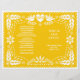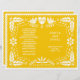 Yellow papel Picado love birds wedding fiesta folded program. It displays two white lovebirds and a love heart with the word love and flowers, leaves and small dots on red on yellow background. This Mexican folk art style floral wedding template design is fully customizable. Use only this type of paper as it folds well.