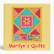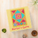 This notebook is great to hold your quilt photos, quild notes, projects, or information for a shop regarding clases or other information. Easy to customize with your name or business name. This quilt art based on original art and features favorite patchwork quilt blocks such as a log cabin, stars and pinwheel blocks. This design is original art created by Phyllis Dobbs in vibrant and dynamic colors on a yellow background. Customize for your use and to make it yours!
