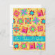 Get your customer's attention with this sunny yellow quilt art postcard to announce your quilt business or store sale, grand opening, open house, classes or other information about your quilt business. A turquoise aqua blue bar on the front can be used to personalize with the name of your store or business or other venue. Original quilt art combines favorite quilt blocks plus unique blocks in vibrant and dynamic colors of yellow, orange, pink, lime green, turquoise and red on a yellow background. The quilt art is by quilt and fabric designer Phyllis Dobbs and is available in fabrics from Quilting Treasures. More products with this quilt art are available in Phyllis' main Zazzle store PhyllisDobbs. Matching stamps available that you can customize with your business name.