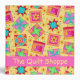 Personalize this colorful yellow quilt art notebook album for your quilting business or guild. This trendy and colofrul quilt art is based on original art featuring favorite patchwork quilt blocks plus unique blocks in vibrant and dynamic colors of orange, pink, green, red, and blue on a warm yellow background. A hot pink strip on the front and spine gives an area for personalization with your business name or other words. This binder has several uses to keep your business organized with quilt projects, notes, patterns or photos and makes a great marketing or advertising tool for a quilt business. Fully customizable.