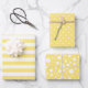 Three patterns in lemon yellow and white: basic stripes, polka dots and random spots.