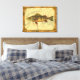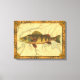 This print illustrates an artistic picture of a yellow perch fish. The background displays a vintage geographic map in light beige colors. The brown frame resembles old wood pattern with yellow-red flowers in the edges. A great addition to your fishing collection!