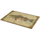 This print illustrates an artistic picture of a yellow perch fish. The background displays a vintage geographic map in light beige colors. The brown frame resembles old wood pattern with yellow-red flowers in the edges. A great addition to your fishing collection!