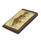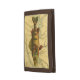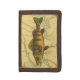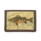 This print illustrates an artistic picture of a yellow perch fish. The background displays a vintage geographic map in light beige colors. The brown frame resembles old wood pattern with yellow-red flowers in the edges. A great addition to your fishing collection!