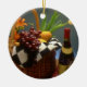 Yellow Picnic basket with wine, cheese, bread and Ceramic Ornament