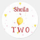 Yellow Pink Balloons Birthday Party - Personalize This Classic Round Sticker. Change the name and age, and you can also change the font and its color.
