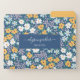 Floral file folders featuring three versions of the same floral pattern with flowers in blue, yellow, white, and pink. Add your name or business name or the subject of the folders in a lovely thin script.