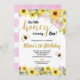 Yellow pink bumble bee sunflower girl 1st birthday invitation
