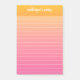 Lined post-it notes with white lines against a pastel ombre ranging from a peachy yellow to deep pink. Add your name in a bold white script.