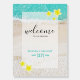 This design features yellow frangipani / plumeria flowers on a tropical beach background. A tropical design elegantly framed with yellow frangipani flowers and centered wording. The bride's and groom's names and wedding date are emphasized with a turquoise color chosen from the ocean water. These popular tropical Hawaiian flowers are ideal for an elegant destination beach wedding. Tropical wedding welcome sign design with modern elements. Matching wedding invitations and other stationery items are also available.