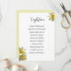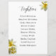 Yellow plumeria wedding table number paper. List names of guests beneath their table number and hang sheets at the reception. Both fonts are modern and have a hand-written look and names are easy to read. Combine names if needed - such as Mr. and Mrs., or leave spaces, depending on the number of guests at each table. Hang on a background of some kind, or on a wall. Reverse is solid yellow. If larger paper is needed, transfer this design to a poster or 8x11 inch paper.