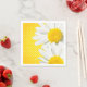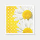 Paper napkins with yellow polka dots and white and yellow margarita flowers.