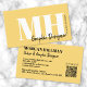 Mustard Yellow Professional Simple Modern Monogram Business Card. You can change it to any business you want—makeup artist, lash specialist, hair stylist, or even something like marketing, consulting, and more! Featuring a mustard yellow background on both sides with black and white fonts in classic and bold typography paired with an elegant script font for the details. The back includes space for a QR code so customers can quickly connect to your website, with social media icons placed above it—you can remove any you don’t want. A trendy and chic look that is still professional and elegant. You can change out all of the colors to make it the way you want it. The side name on the front should work with most initials, but if not, you may want to play around with the spacing in the full editor.