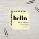 Customizable yellow business card, with HELLO typography and name, profession, website and social media details. On the back there is a scannable QR code. To generate a new QR code on the design that links to your own website, click on the "personalize this template" Add your URL address or social media handle in the area provided and a QR code will be generated just for you.
