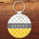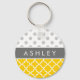 Yellow Quatrefoil and Gray Polka Dot Pattern Keychain