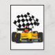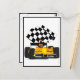 Vroom, Vroom!! Send a quick note with this Yellow Race Car with a winning checkered flag postcard!