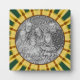 Yellow and brown abstract rays design with aura color emanations frame create your own photo tabletop plaque. Design by Susan.