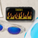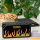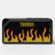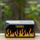 This portable speaker features illustrations of classic flames in yellow and red against a black background for a tough, manly look. Your name or other message is in golden yellow lettering.