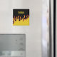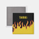 Add a name or custom message to create a refrigerator magnet with a tough, manly look. This magnet features an illustration of flames in yellow and red set against a black background.