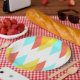 Yellow, red and cadet blue triangles paper plates