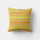 This throw pillow design features a yellow, red, and turquoise colored striped pattern.