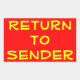 Sticker with yellow "Return to Sender" on a red background. Use on mail to get your point across to the person sending this mail to you. Customizable.