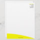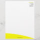A classic yellow rolling hill letterhead, available in 5 paper types. The design features your company name (in yellow) and company message (in black) at the top, followed by lines of optional addresses and contact information (in gray). At the bottom of the page is a solid yellow hill with an optional web address (in dark gray).