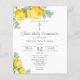 First Holy Communion affordable paper invitation featuring yellow roses and greenery. Ready for easy personalization.