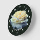 Pretty pale yellow rose in bloom floral wall clock. Flower photography by Susan. This image is available on many cards and products in my main store Smilin' Eyes Treasures. Visit my Profile page to find links to all of my stores.