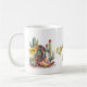 Pretty Texas souvenir mug with graphics of pretty colorful cowgirl boots, cactus and yellow roses. Text, on the front of the mug reads, Yellow Rose of Texas, and can be personalized to read what you want.