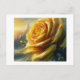 A vivid, swirling depiction of a yellow rose captures attention with dynamic brushstrokes and radiant colors. Light illuminates the petals, enhancing their vibrant hues against a dramatic background.