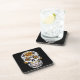 Yellow Rose Sugar Skull on Black Beverage Coaster